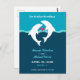 Diese farbenfrohe, moderne, blaue Hochzeitskarte verfügt über zwei verspielte Delfine in den Ozeanwellen. Ideal für eine Strandhochzeit am Meer oder eine Hochzeit auf einem Kreuzfahrtschiff. Einfache Anpassung mit Ihren Hochzeitsdetails.