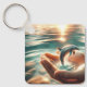 Dieser Schlüsselanhänger hat einen Delphin, der darauf abgebildet ist.