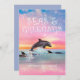 Weihnachts-Weihnachtskarte zum Thema Beach bietet einen Delphin, der unter einem magischen Sternenhimmel mit einer "Seas & Greetings"-Beschriftung überspringt. Kunst von KL Stock