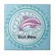Dolphin Splash Kachel, Dolphin Bekleidung, Dolphin Geschenke von ArtMuvz Illustration. Um PERSONALISIEREN, geben Sie Ihren Namen ein oder fügen Sie stattdessen Text hinzu. Passen Sie diese Dolphin-Kachel an, um sie einzigartig zu machen oder als personalisiertes nautisches Geschenk zu geben.