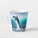 Diese Tasse zeigt eine wunderschöne digitale Kunstdarstellung eines Delfins, der mit dem Nachthimmel im Hintergrund aus dem Ozean springt. Das wäre ein wunderbares Geschenk für jemanden, der Delfine Liebe.