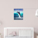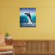 Dieses Poster zeigt eine wunderschöne digitale Kunstdarstellung eines Delfins, der aus dem Ozean mit dem Nachthimmel im Hintergrund springt.