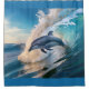 Ein Delphin spielt und surft auf einer gewaltigen Welle des Ozeans.