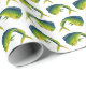 Der Ausrüstungsbeschreibungen des Verpackungspapiers bunte Dolphinfish (mahi mahi) illustriert durch Künstler Dämmerung Witherington.