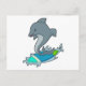 Dolpin als Surfer mit Surfboard Postkarte