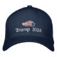 Flying Star und stipe Logo bestickte Hut in patriotisch rot-weiß und blau Design. Donald Trump für Präsident 2024, eine Kampagne, die mit Baseballmütze bestickt wurde.