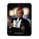 Donald Trump klingelt im Neuen Jahr mit einem festlichen Party-Hut, einem Glas Champagner und einem kühnen "Happy New Year"-Zeichen. Das lebendige Feuerwerk im Hintergrund verstärkt die feierliche Stimmung.