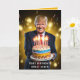 DONALD TRUMP BIRTHDAY CARD mit TRUMP, die einen bunten, fantastischen Geburtstagskuchen mit Kerzen in leuchtenden Farben hält. Alle Texte und Schriftart können geändert werden.