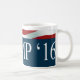 DONALD TRUMP für Tasse Präsidenten im Jahre 2016 mit Rot-, weißem und Blauemamerikaner USA-Flaggenentwurf. Republikanische Party-Karte.