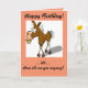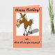 Ein Cartoon Esel nimmt die Vorderseite dieser Karte auf und wünscht jemandem einen guten Geburtstag. Eine komische Karte.