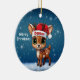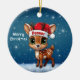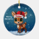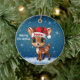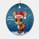 Donner! Cute whimsical reindeer graphic. Unique snowy deer illustration. Blue festive holiday season round ceramic ornament. Woodland wildlife forest animal, Santa hat character and Merry Christmas written in white. Great for decorating your tree or as a thoughtful gift, this baby doe with antlers winter snow decor makes a cherished Xmas keepsake for years to come. Customize by changing the text, the font, the font color, or remove the text. You can even transfer this fawn design onto other products. Enjoy this cartoon illustration your way! 🎄🦌