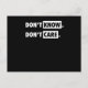 Dont Know Dont Care Funny Sarcastic Joke Geschenk Postkarte