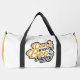 This cheerful white and yellow duffle bag features an adorable bee and the uplifting message "Don't Worry Bee Happy" in playful yellow and orange script. It's a fun and positive accessory to brighten anyone's day, whether they're off to the gym, traveling, or just need a smile. This bag embodies a lighthearted and optimistic spirit. Edit color of the bag caps and body in the Design tool to your favored colors.