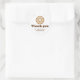 Süß, mutig und perfekt für die Bäckerei - dieser Dankeschön-Aufkleber für das Backgeschäft verfügt über ein kreisförmiges Layout mit einer Donut-Illustration oben, einem fetten braunen "Danke"-Text und einer herzlichen Nachricht: "für die Unterstützung unserer kleinen Bäckerei" in kursiver Schrift. Er ist ideal für Aufkleber für kleine Bäckereien, Dankeschön-Aufkleber für Hobbybäcker und Dankeschön-Aufkleber für Konditoreien, die ihre Wertschätzung mit einem lustigen, thematischen Design ausdrücken möchten.