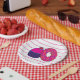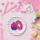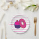 Donut Cupcake rosa Streifen Muster Papier Teller. Farbenfrohe Donut Cupcake Vektor Illustration auf rosa Streifen für Feinschmecker.