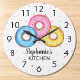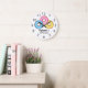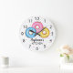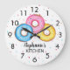 Diese lustige Uhr ist mit drei Donuts in blau, rosa und gelb auf einem Sprinkle-Hintergrund dekoriert. Einfach mit Ihrem Namen anpassbar. Verwenden Sie die Option Weitere anpassen, um die Textgröße, den Stil oder die Farbe zu ändern, wenn Sie möchten. Weil wir unsere eigenen Kunstwerke erstellen, werden Sie dieses exakte Bild von anderen Designern nicht finden. Original Wasserfarbe © Michele Davies.