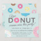 Niedliche donut Party Einladungen für eine donut themed Geburtstagsparty (oder irgendein Donut Party - personalisieren Sie einfach den Text, um die Einladungen individuell für Ihre Veranstaltung zu machen). Mit rosa, blau und schokoladenbraunen Donuts auf einem Minzhintergrund, mit einem lustigen "You DONUT will miss this Party!"-Design. Für mehr Party-Dekorationsideen lesen Sie unsere Donut Party Collection.