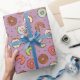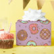 Niedliches Donut-Muster mit verschiedenen Donuts, teilweise mit rosa, grün, blau, weiß oder mit Schokoladenbrötchen vereist. Einige Donuts haben Sprinklen und andere sind nicht ganz. Sorry, keine Sahne gefüllt Donuts in dieser Kiste, ich gemein, Muster. Dieses Muster befindet sich auf einem lila Hintergrund.