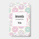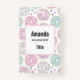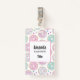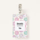 Namensschild mit einem köstlich lustigen Muster. Illustration von pastellrosa und grünen Donuts mit Sprinklen und Vereisung.