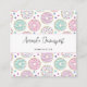 Visitenkarte mit einem köstlichen lustigen Muster. Illustration von pastellrosa und grünen Donuts mit Sprinklen und Vereisung.