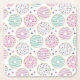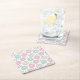 Papier (robuste Zellstoffplatte) Untersetzer mit einem köstlichen lustigen Muster. Illustration von pastellrosa und grünen Donuts mit Sprinklen und Vereisung.