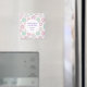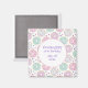Magnet mit einem köstlich lustigen Muster. Illustration von pastellrosa und grünen Donuts mit Sprinklen und Vereisung.