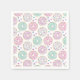 Papierservietten mit einem köstlichen Muster. Illustration von pastellrosa und grünen Donuts mit Sprinklen und Vereisung.