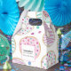 Eine winzige Gefälligkeitsbox mit einem köstlich lustigen Muster. Illustration von pastellrosa und grünen Donuts mit Sprinklen und Vereisung.