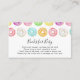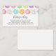 Eine Reservierungskarte für Babydusche. Mit Multicolor-Donuts und Gedicht: "EINE KLEINE ANFRAGE, HOFFEN WIR NICHT ZU SCHWIERIG BITTE BRINGEN EIN BUCH ANSTATT EINER KARTE, SIE WERDEN DAS BUCH CHERISIEREN, GUT LIEBT ODER NEUE BITTE UNTERZEICHNEN SIE DIE INNEN MIT EINER BOTSCHAFT VON IHNEN!"