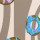 Rosa und blaue Eistötchen mit Sprinklen auf einem kaffeemäßigen Hintergrund.