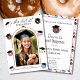 Dieser Bilderrahmen "Donuts and Degrees" enthält ein atemberaubendes Foto Ihres Absolventen, schön in einem leicht zu bedienenden Bogenrahmen dargestellt. Auf der Rückseite des Gemäldes finden Sie wunderbare Details zum Party: Spaßspenden in allen Formen, mattiert und bestreut, Graduierungskappen und Diplome sowie alle wichtigen Informationen über die Brunch-Feier.