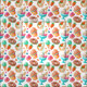 Niedliches und lustiges illustriertes Muster mit Schokoladendonuts mit Sprinklen, Minzschokoladeneis, Schokoladeneis-Sundaes, neapolitanen Eissundaen, Erdbeerschnecken, Erdbeeren, Heidelbeeren, hellrosa Macarons mit gelber Füllung und winzigen Herzen in diesem Muster. Ein skurriles Design für jedes Material.