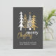 Stilvolle Weihnachtskarte der Firma, in Grau gemacht, mit doodle Kunst Grafik von weißen und goldenen Weihnachtsbäumen, oben. Personalisieren Sie den Text, um zu lesen, was Sie gewollt haben. Großartige Firmenurlaub Grußkarte, die die Mitarbeiter zu schätzen wissen.
