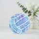 Diese niedliche Party Einladung mit Volleyball-Thema, die in blauer Farbe mit türkisfarbenen und lila Akzenten gehalten ist, zeichnet sich durch die Kontur eines einfachen Volleyballspiels aus - ein zartes Doodle-Muster aus Paislien, Blume und Federn in weißer Farbe - bis auf eines der texturierten Volleyballfelder - personalisieren mit ihren Festdetails - von katz_d_zynes