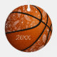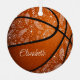 Dieses niedliche Basketballornament zeigt das realistische Bild eines Basketballs, der ein zartes Muster von Doodle-Blume, Federn und Paislies aufweist, die sich über alle Basketballfelder befinden - und den Namen des Athleten vorn personalisieren, das Jahr, an dem er erinnert - von katz_d_zynes