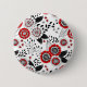 Doodle-Blume und -Blätter in Rot und Schwarz Button