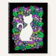 8,5" x 11" Wendelheft mit Katzenleder und Blumendoodles (schwarzer Hintergrund)