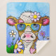 A hand drawn doodle portrait of a cute cow wearing sun-glasses:)