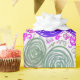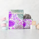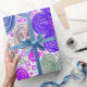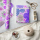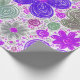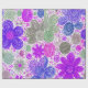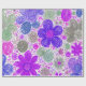 Lebhafte Blume in lila, rosa, blauen und grünen Farbtönen sind in einem skurrilen, wirbelnden Muster angeordnet