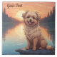 Niedlich Doodle Hund sitzt bei Sonnenuntergang am See. Fügen Sie dieses Bild anderen Produkten hinzu. Fügen Sie auch Ihren eigenen Text hinzu. Ändern der Hintergrundfarbe. Viele Haustiere in meinem Laden.