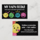 Auf dieser Visitenkarte befinden sich farbenfrohe Schreiber- oder Doodle-Bälle aus Garnen mit Emoji-Gesichtern für Strickereien, Strickhandwerke, Häkelchen, Garne oder andere Garnhandwerker.
