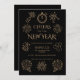 Doodle Gold Black Cheers to New Year Party. Available digitally and printed. Informal and fun, with playful quirky sketchy lines and doodle illustrations. Easily personalise to your own details in gold and black.