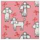 Ein lustiger Stoff für Hundefreunde mit weißen Poodles mit Bögen an ihren Ohren und schwebenden roten Herzen auf einem warmen rosa Hintergrund. Sie können die Hintergrundfarbe an Ihre Bedürfnisse anpassen.