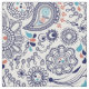 Modernes Doodle-Pisley-Muster. Zierteardrop und Blumenmotive in einem sich wiederholenden, nahtlosen Druck in dunkelblau mit hellblauen und kastanienroten Akzenten. Set auf weißem Grund.