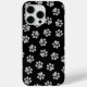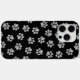 Niedliches, lustiges und anmutigendes Muster mit weißen Pfoten auf schwarzem Hintergrund. Modernes und trendiges Geschenk, perfekt für den Hundeliebhaber in Ihrem Leben.