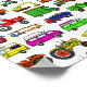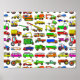 Ein Set handgezogener Doodle-Fahrzeuge einschließlich Traktoren, Lieferwagen, Bagger und LKW.