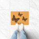 Dieses Design zeichnet sich durch einen hübschen, orangen und schwarzen Monarchen-Schmetterling aus, der in verschiedenen geometrischen Formen die Muster der Flügel und des Körpers des Schmetterlings schmückt. Passen Sie den Text auf dieser Türmatte an, um eine personalisierte Dekoration für Ihren Eingang zu schaffen.