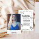 Handgezeichnete Abschluss Ankündigung Staaten "graduate" in zartem, weißen eleganten modernen Schriftart und hat Ihr Lieblings-persönlichen Foto auf der Vorderseite der Karte. Die Rückseite kann zusätzliche Informationen über den Absolventen enthalten, die in minimalistischem Schwarz-Weiß-Design präsentiert werden.