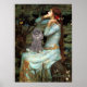 Ophelia (sitzend) von John W. Waterhouse (1898), angepasst an eine silberne Miniatur oder Spielzeug Poodle. Dieses Gemälde basiert auf Shakespeares Ophelia.