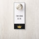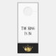 Dieser Türhänger ist zweiseitig und mit einer goldenen Königskrone ganz unten gekrönt. Obere Kanten, umgeben von einem silbergrauen Rahmen mit Beispieltext von "The King is In". Passen Sie dieses Objekt Ihren Wünschen an, mit welcher Farbe oder Phrase Sie möchten, oder kaufen Sie es wie geplant.